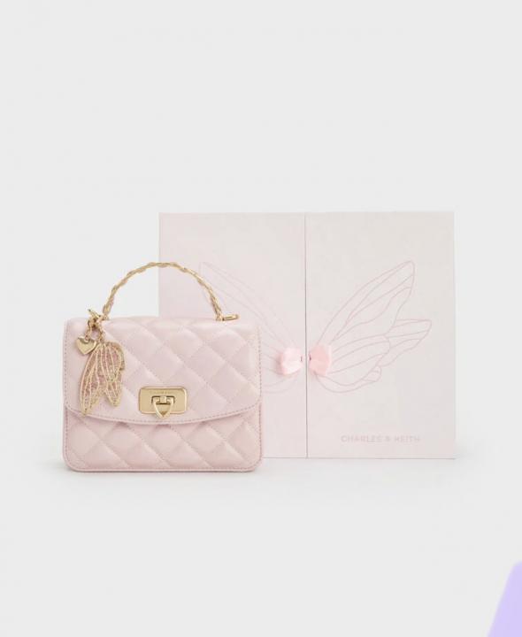 CHARLES_KEITH_Cressida.Quilted.Top.Handle.Bag.With.Bag.Charms_With_Og_Gift_Box-Cotton Candy Pink '50701608'