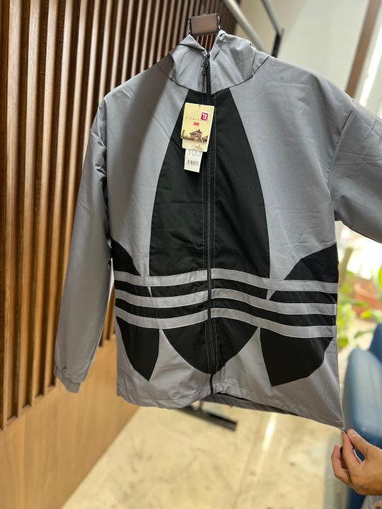 ADIDA_S GREY ORIGINALS BIG TREFOIL BLACK LOGO TRACK TOP TRAINING JACKET FASHION