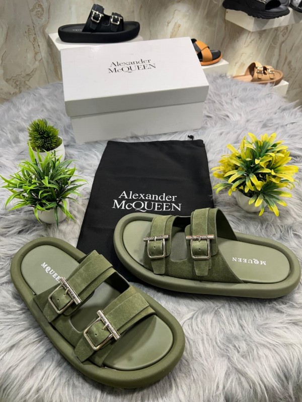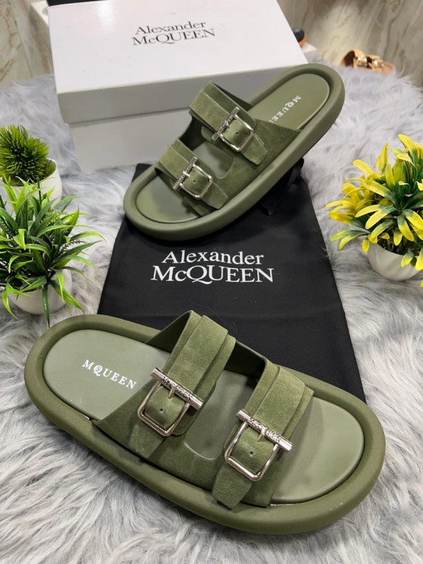 ALEXANDER MCQUEEN Suede Leather Double Buckle Sandals