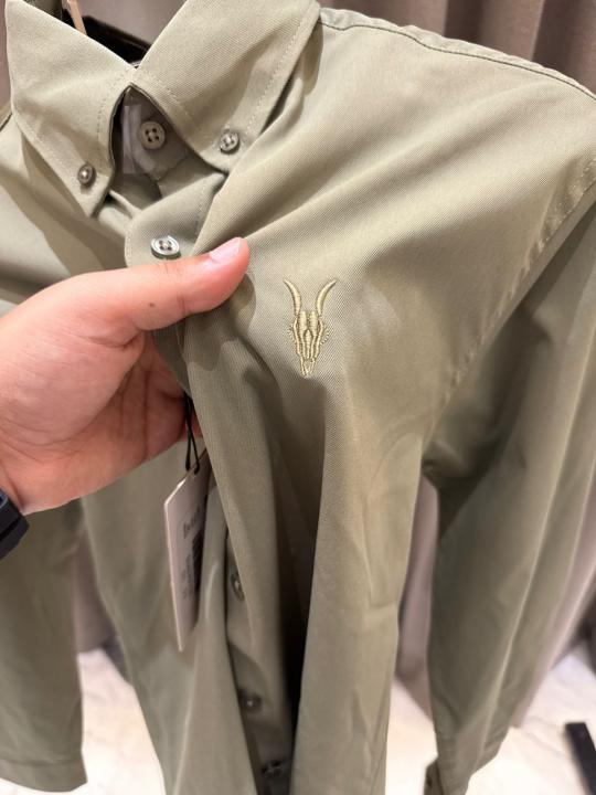 All Saints Chest Logo Full Sleeves Shirt Olive Green