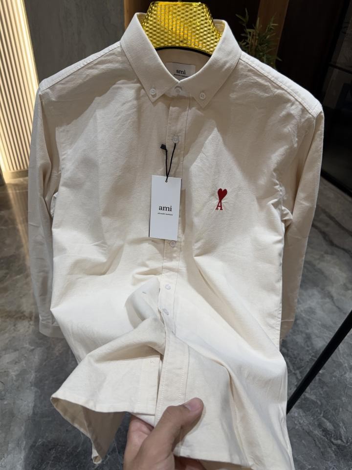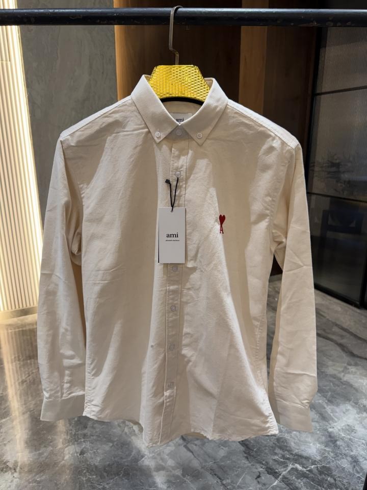Home Shirts AMI PARIS CREAM PREMIUM RED LOGO EMBROIDERED STORE ARTICLE SHIRT