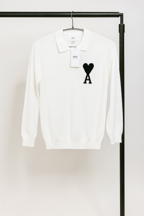 Ami Paris White Knitted Polo Full sleeves IMPORTED