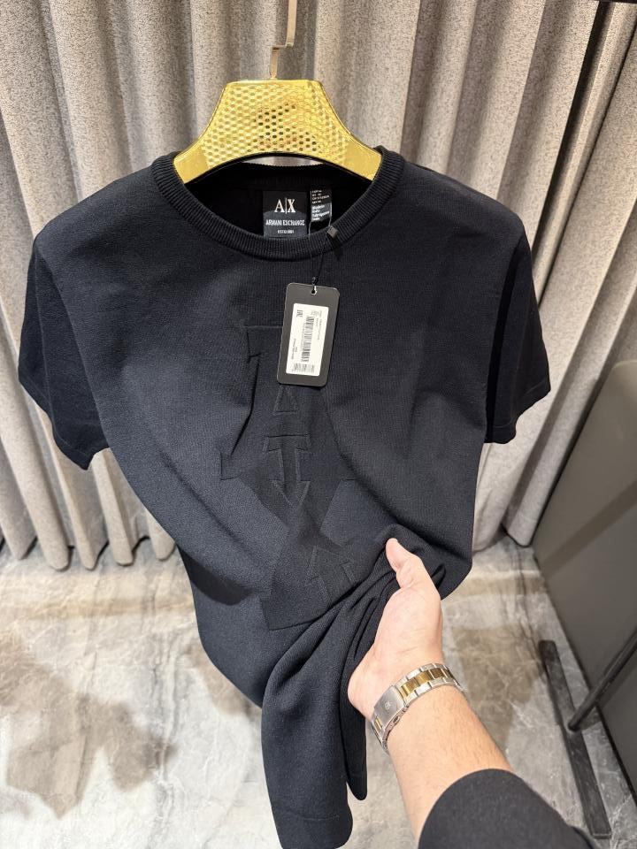 Home T-Shirts Arman i exchange Black Knitted Lycra Round neck