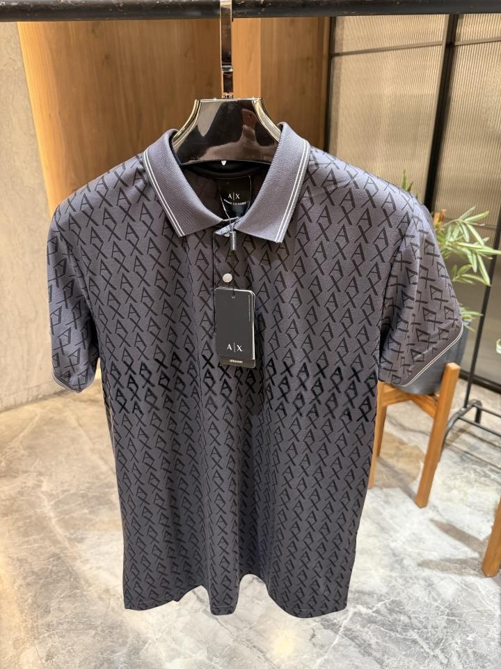 Home T-Shirts Arman_i Exchange Grey Velvet Print Polo tshirt with Box