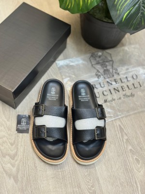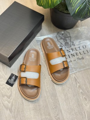 Brunello Cuc_inelli style luxury double buckle leather strap premium slides