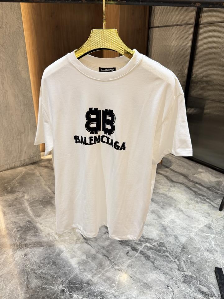 Home T-Shirts Balenciaga White velvet Front Print Round neck Tshirt