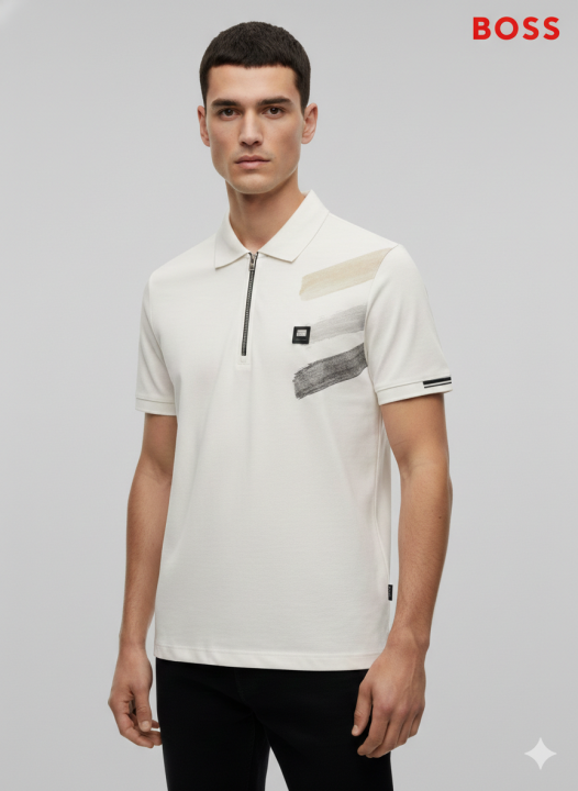 BOSS WHITE PREMIUM CHAIN PAINT POLO