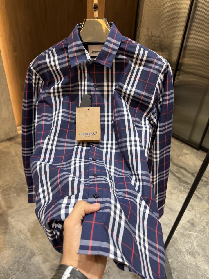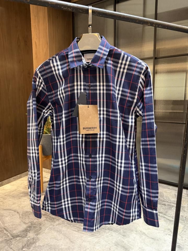 BURBERR_y DARK BLUE WHITE CHECKS CLASSIC PRINTED PREMIUM SHIRT