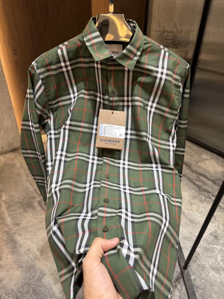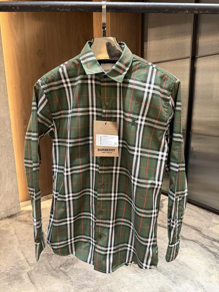 BURBERR_y OLIVE GREEN WHITE CHECKS CLASSIC PRINTED PREMIUM SHIRT