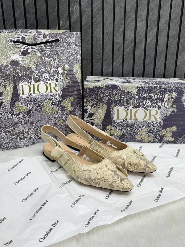 Christian Di_or ja transparent mesh embroidered slingback flats (beige cream & white)