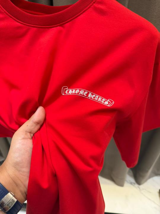 Chrome Heart Round Neck T-shirt USA Flag Grey