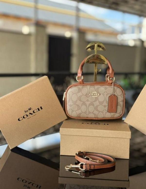 Coac_h Taupe Logo Mini Satchel with box 619