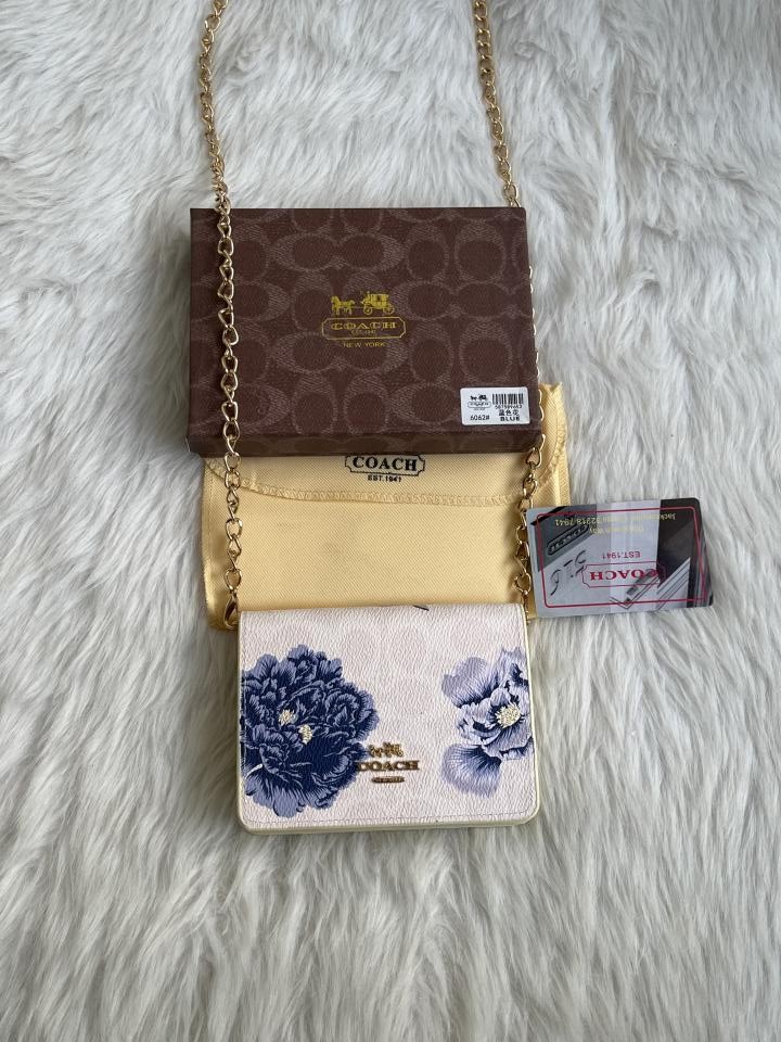 Coach_122_BlueFlower_ChainOnWallet_With_OriginalBox_DustCover_BrandCard