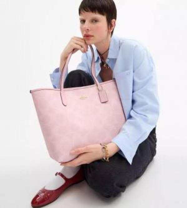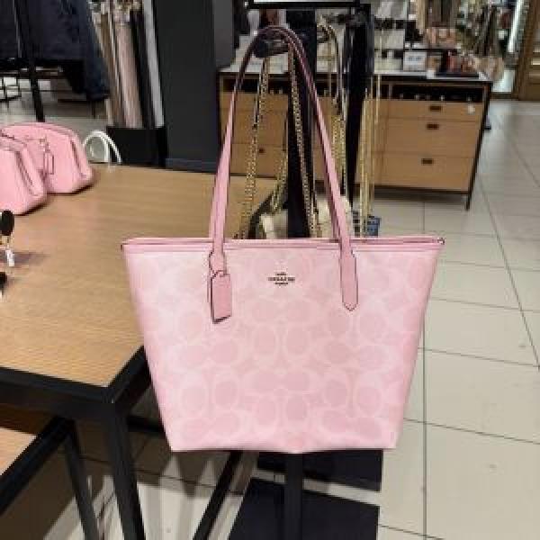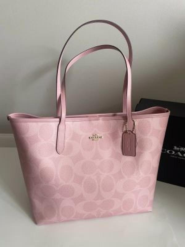 Coach_ city_tote bag in signature canvas powder pink with box premium quality