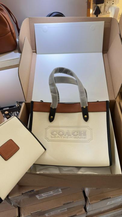 Coach_Field_Tote_Bag_With_OG_Double_Box_&_Dust_Bag_&_Shoulder_Strap_&_Extra_Pouch_(White)