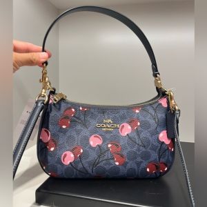 Coach_Teri_Shoulder_Bag_Signature_Canvas_Cherry_Print_Flower_Blue_With_OG_Box_Dust_Cover_Carry_Bag_88075