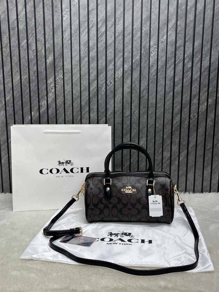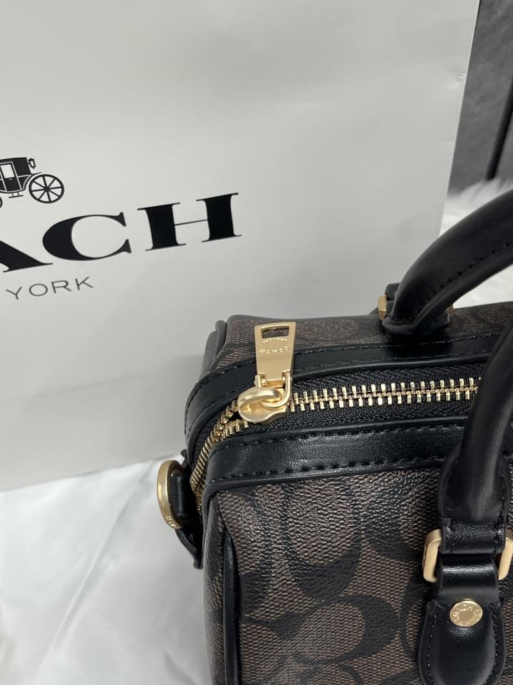 COAC_H Black Rowan Logo Leather Small Satchel with box 722