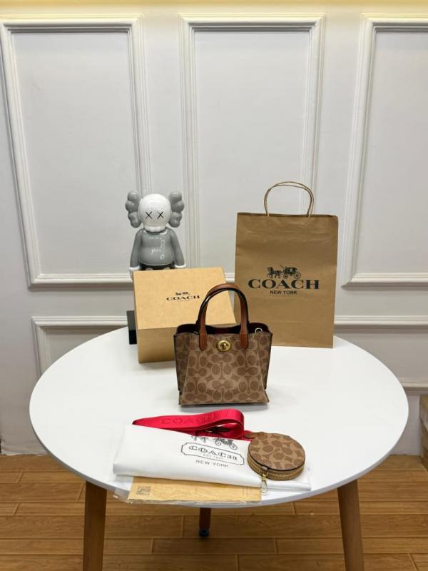 Coach_signature apricot collection willow small tote 24 crossbody top handle bag with double box premium quality