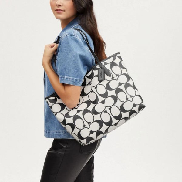 Home Hand bags Coach_Signature_City_Limited_Edition_Premium_Tote_Bag_With_OG_Magnetic_Box_&_Dust_Bag_(Black_White-874)