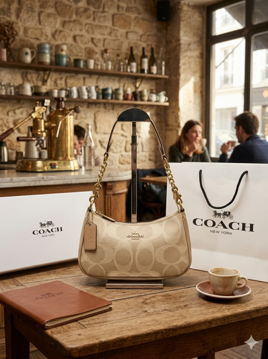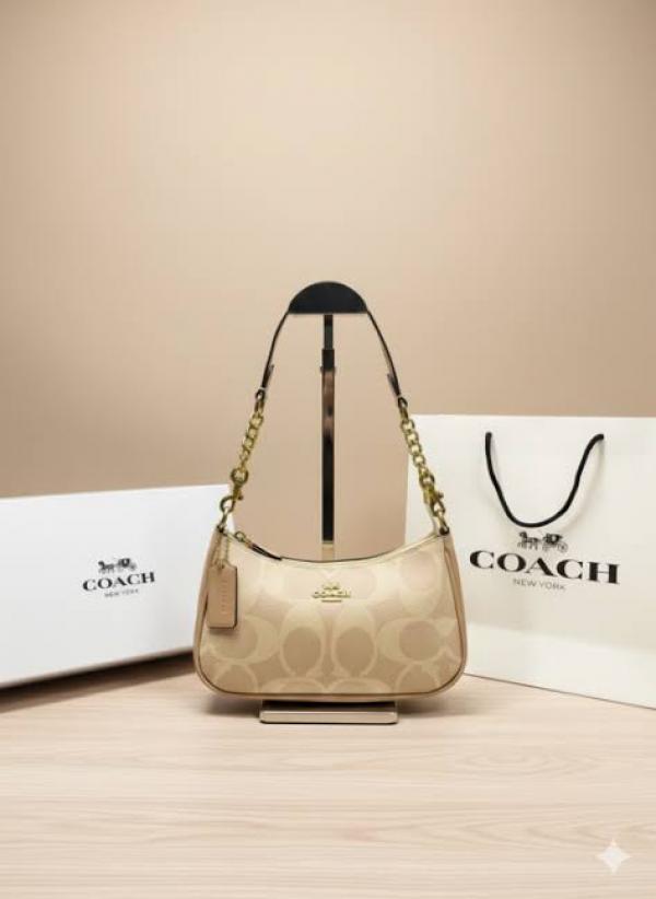 COACH_ Teri Shoulder Bag in Signature Canvas Bag with Double Box premium quality
