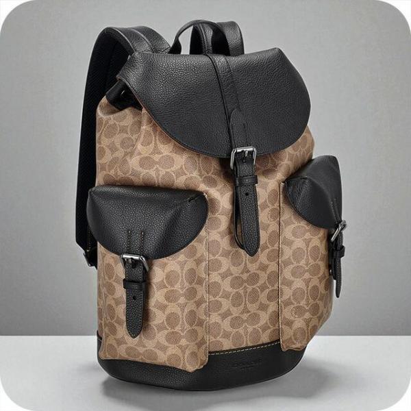 Coach_Warner_Backpack_Signature_Canvas_Coated_Canvas_Leather_With_Dust_Cover_909_Apricot_Black