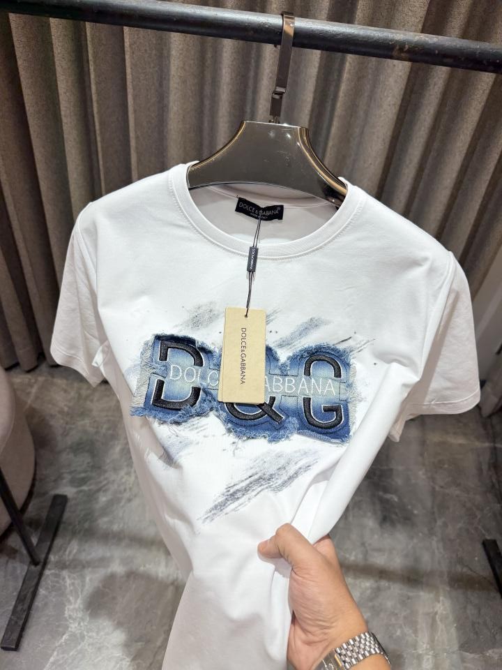 Dolc e & Gabbana White Denim Tear Print with Box Round neck Tshirt
