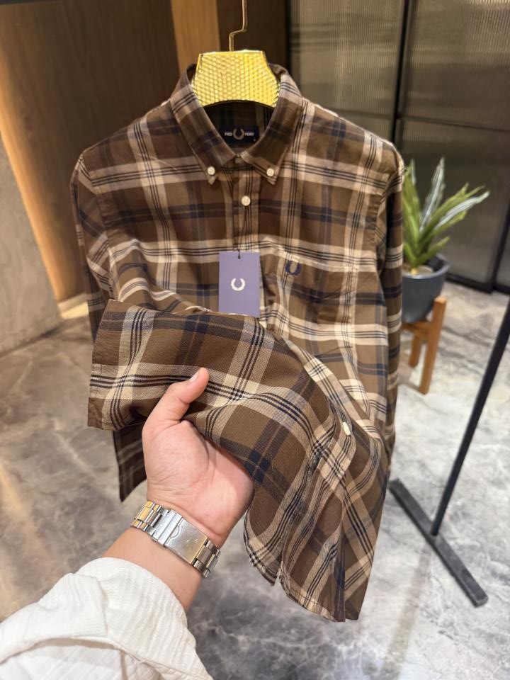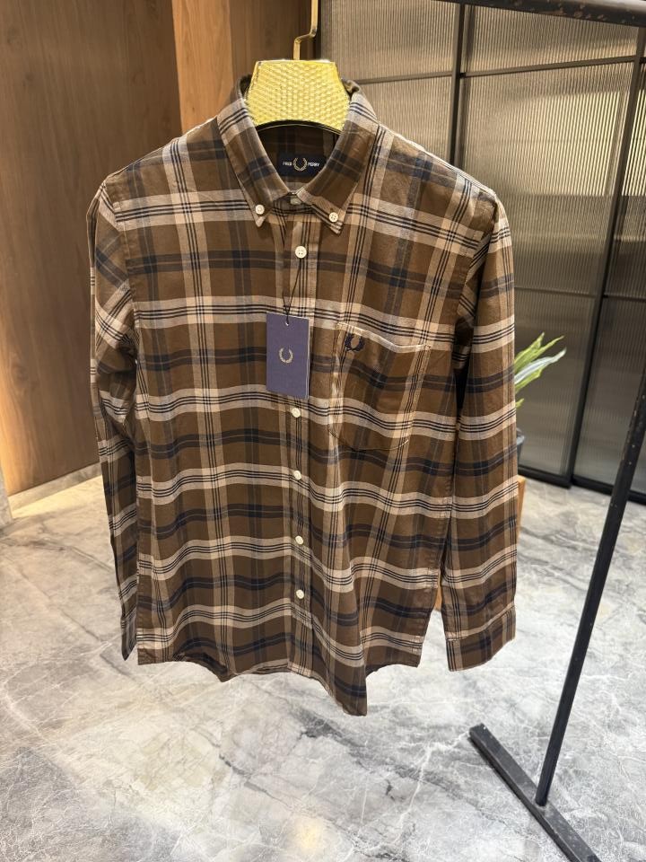Home Shirts FRED PERRY BROWN CHECKS OXFORD COTTON SHIRT