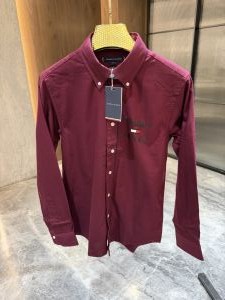 TOMMY HILFIGE_R MAROON EMBOSSED OXFORD COTTON SHIRT