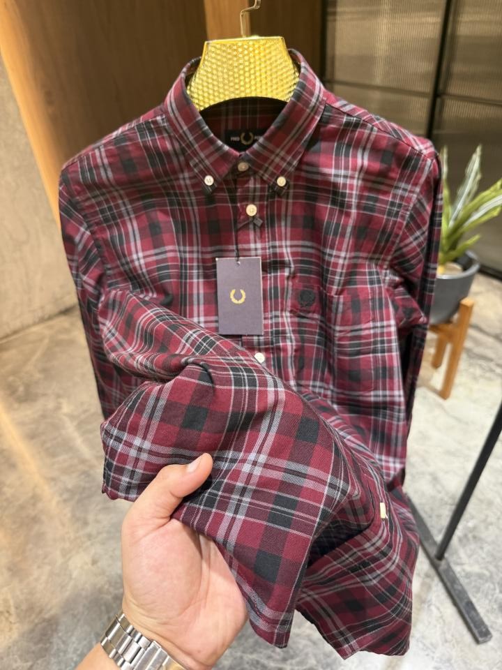 FRED PERRY RED CHECKS OXFORD COTTON SHIRT