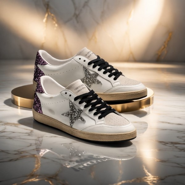 Golden Goose Ball Star White Purple Silver