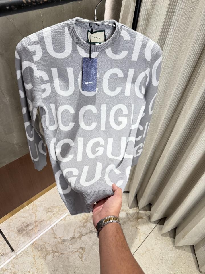 Gucc i Light Grey Knitted Pullover Full Sleeves Knitted Lycra
