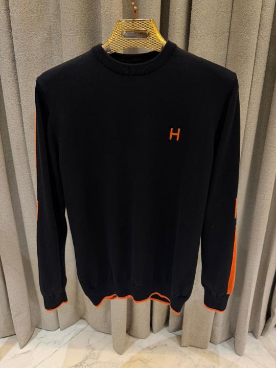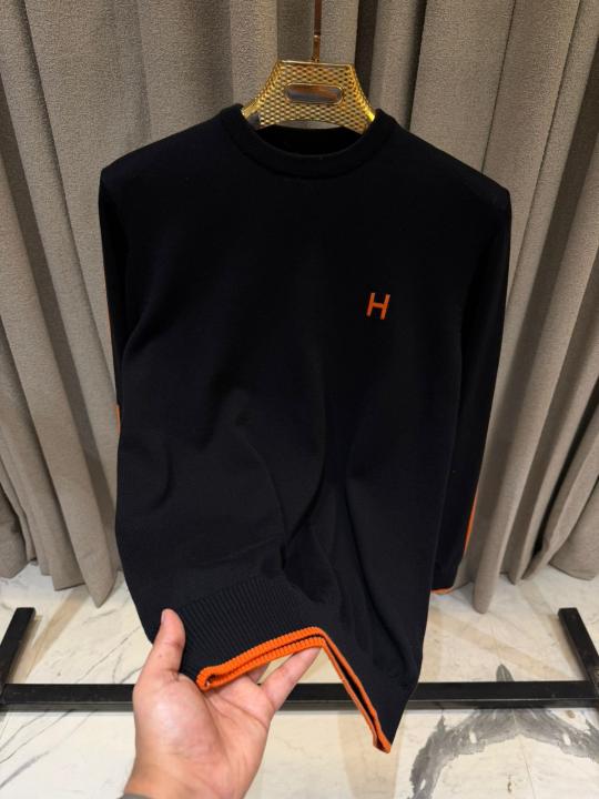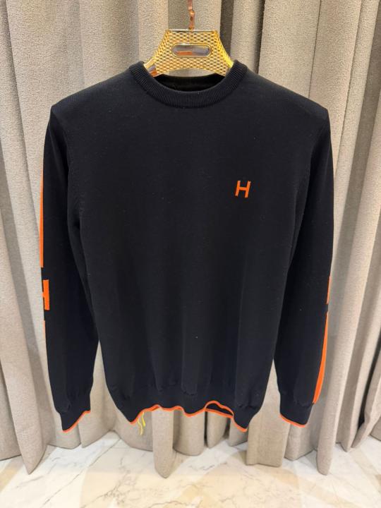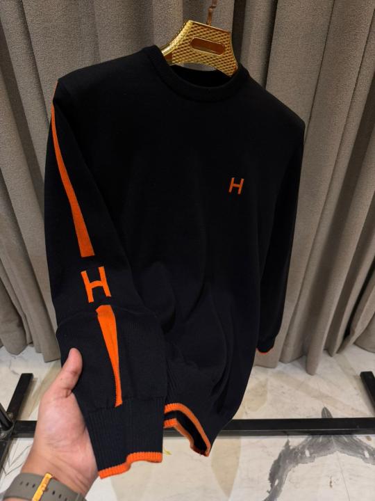 Hermes Chest Logo Full Sleeves Sweatshirt Black