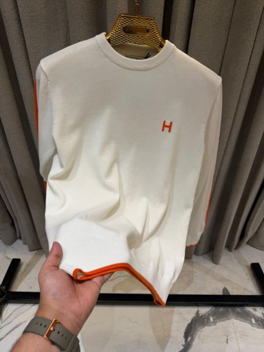 Hermes Chest Logo Full Sleeves Sweatshirt White