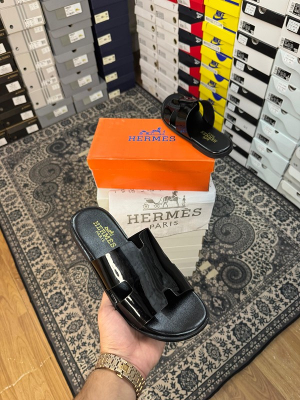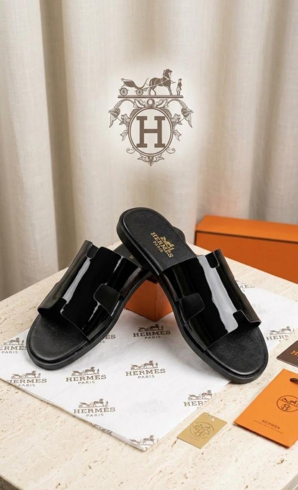 HERMES IZMIR GLOSSY BLACK ITALIAN SLIDE