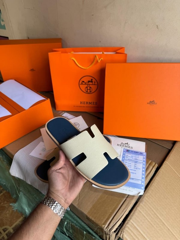 Hermes Chypre Supermaster Flat Sandal White For Men Premium Packing Stuff