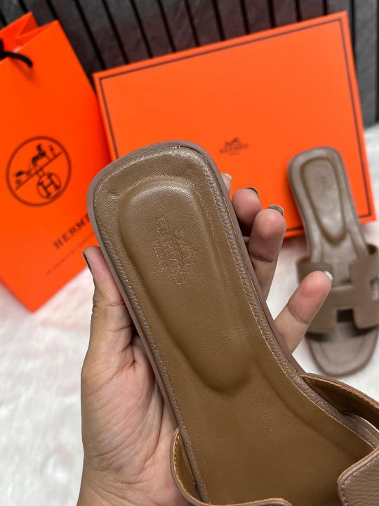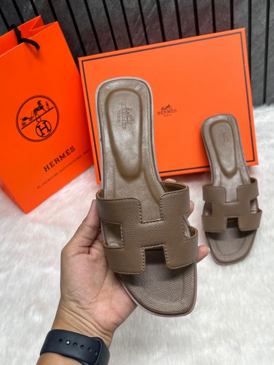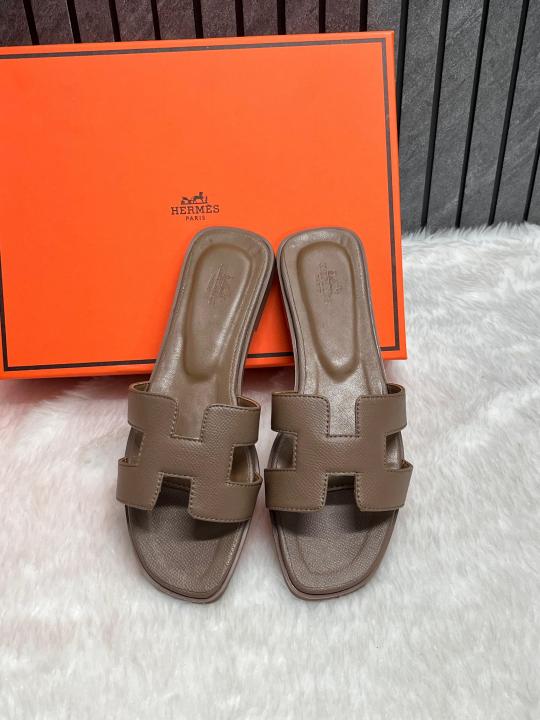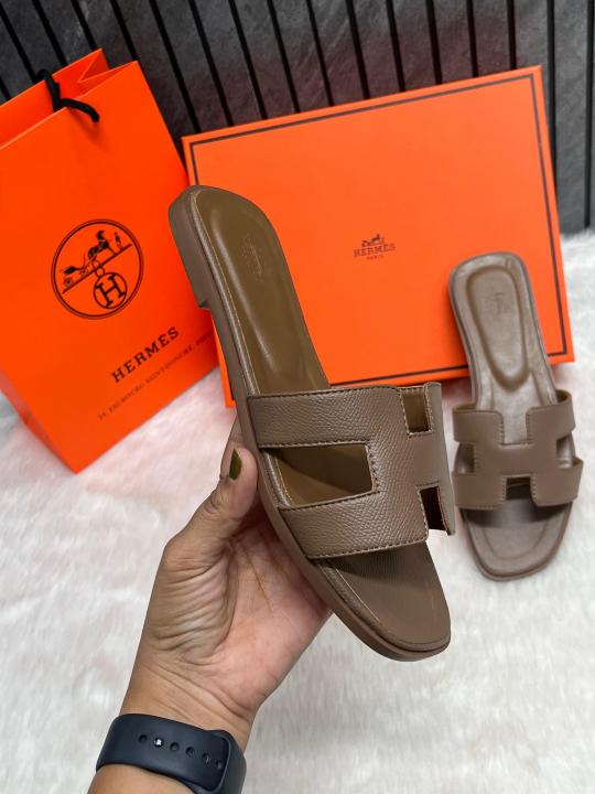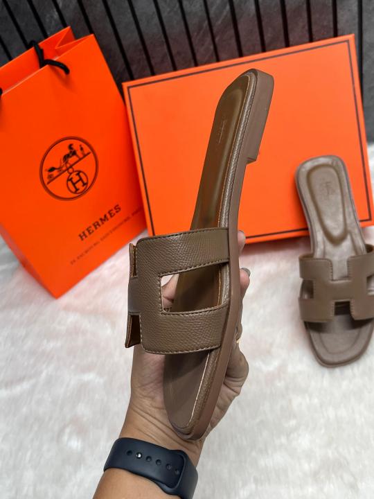 Hermes Oran Coffee Flats With Original Box & Carry Bag