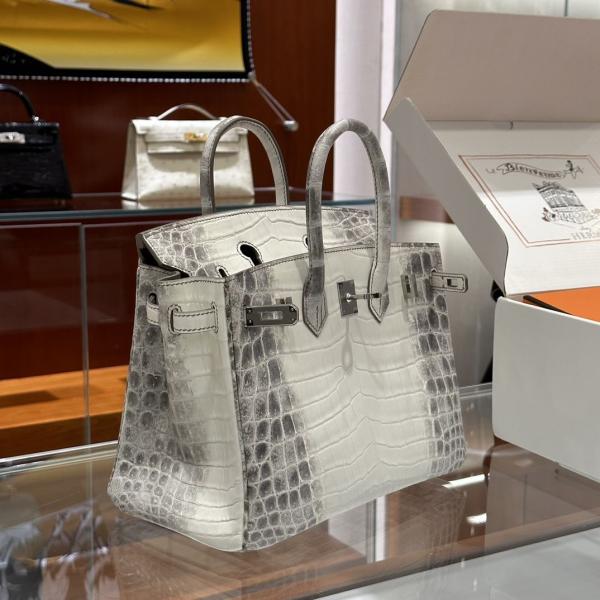 Herms Birkin HSS 25 Noir (Himalyan)Bleu Saphir Crocodile Porosus Lisse Palladium Hardware 6002