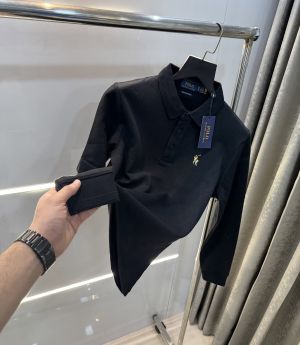 Ralph Lauren Black Embroidery Logo Premium Full Sleeve Polo T-Shirt