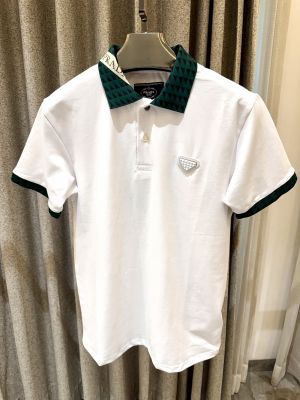 PRAD_a PREMIUM WHITE GREEN COLLAR COTTON STORE ARTICLE POLO TSHIRT