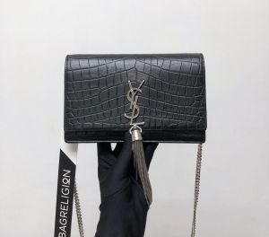 Ysl Kate Tassel Croc Skin Black Silver ShoulderBag With DoubleBox Packing