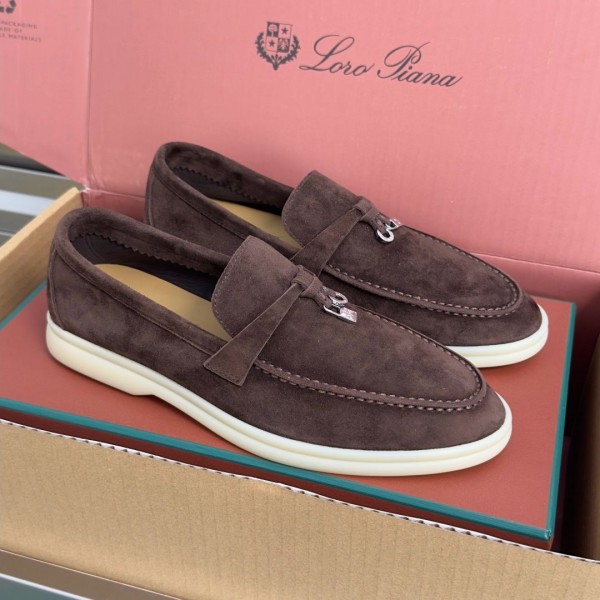 Loro Piana Summer Walk Charm Suede Loafers Brown