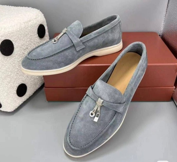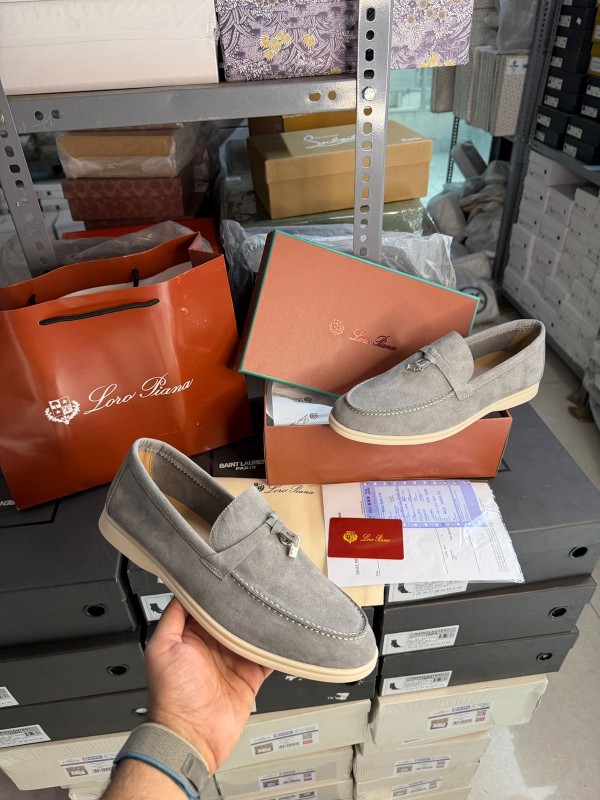 Loro Piano Summer Walk Grey Suede Loafers