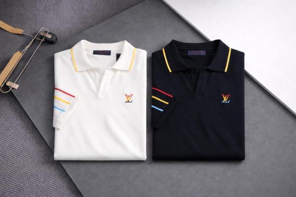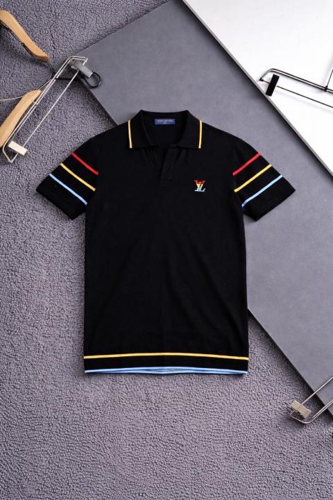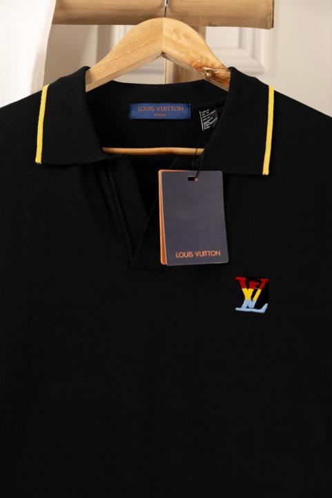 Home T-Shirts Loui s Vuitton Black Premium Polo Tshirt Knitted Lycra