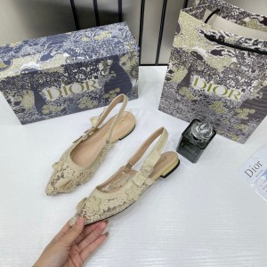 Christian Di_or ja transparent mesh embroidered slingback flats (beige cream & white)