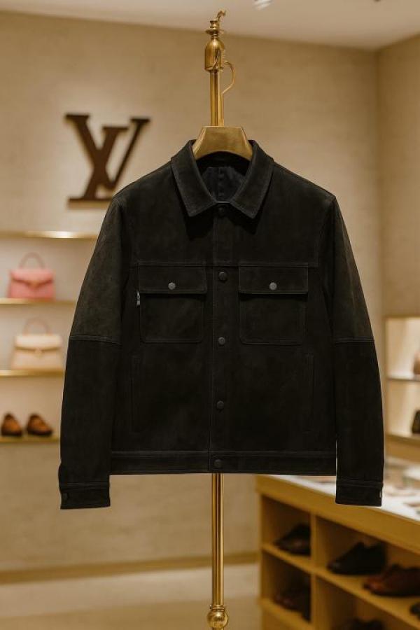 Louis Vuitto n Black Premium Leather Double pocket monogram Jacket
