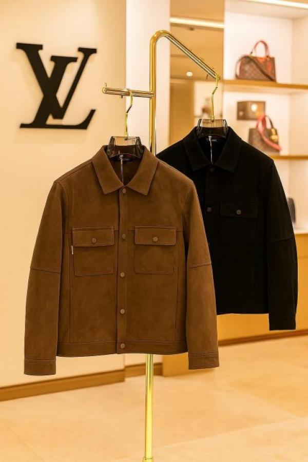 Louis Vuitto n Brown Premium Leather Double pocket monogram Jacket