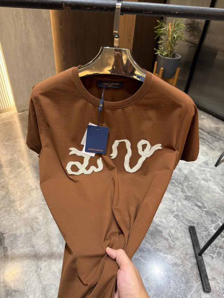 Louis Vuitto n Dark brown Front Diamond Print Tshirt
