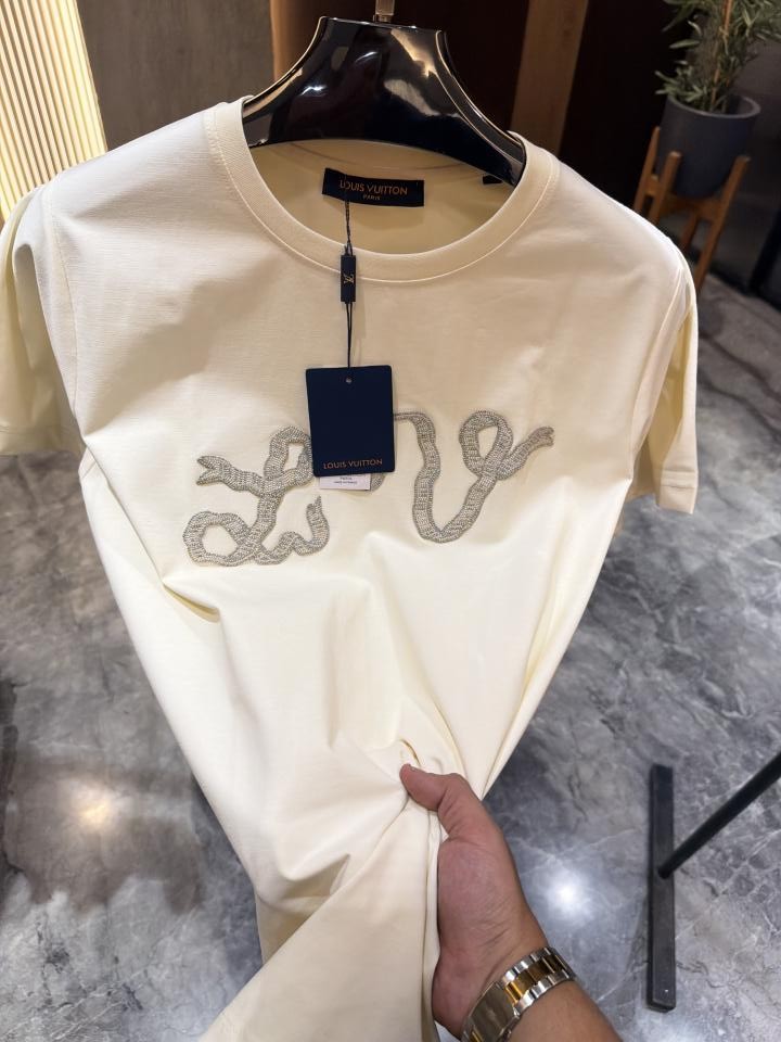 Louis Vuitto n Beige Front Diamond Print Tshirt