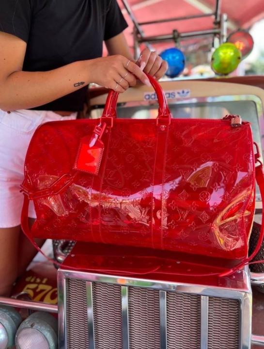 _Louis_Vuitton_Keepall_Bandouliere_50_Red_Transparent_Travel_Duffle_Bag_With_Dust_Bag _(L-810)