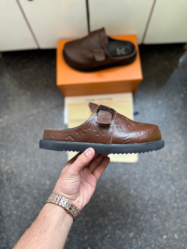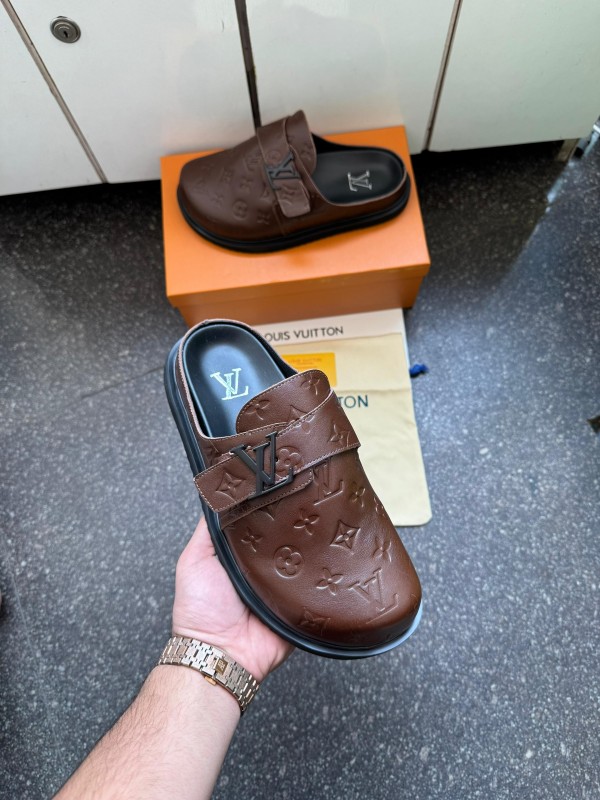 Loui_s vuitton lv leather miami mules wide front strap logo premium slides
